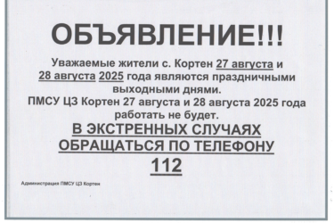 Уважаемые жители села Кортен! Капитальный ремонт первого этажа ПМСУ ЦЗ Кортен через программу «KUSANONE» завершен! В ближайшее время ПМСУ ЦЗ Кортен переедет в свое здание. Информация о переезде будет заранее размещена на нашем сайте. Так же предлагаем вам просмотреть подборку фото ремонта «до» и «после». […]